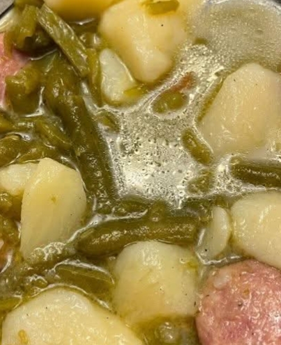 Green beans and potatoes with polish sausage cooked with chicken broth