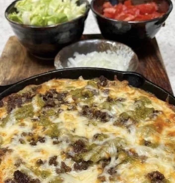 This dish offers a perfect balance of smoky, tangy, and savory flavors. The green chile sauce provides a mild heat and earthiness, while the melted cheese adds richness. Baking in cast iron creates slightly crisp edges with a soft, flavorful center.