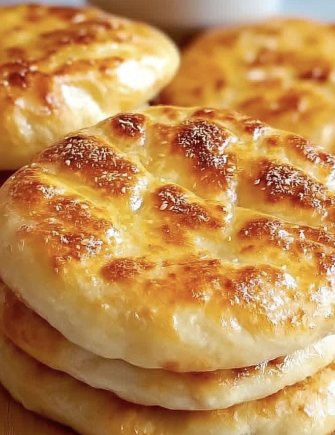 This fluffy Turkish bread is soft, slightly chewy, and light inside with a golden exterior. It puffs beautifully when cooked and has a mild, comforting flavor that pairs well with both savory and sweet dishes.