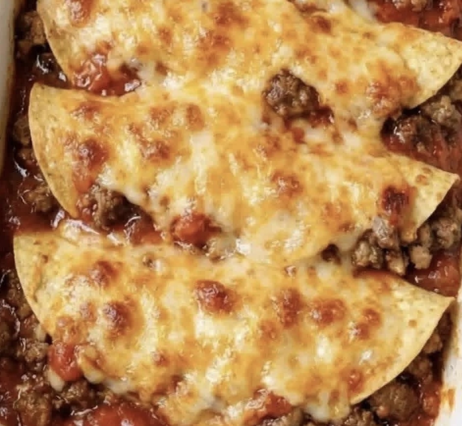 This dish is rich, cheesy, and savory with a slightly spiced beef filling balanced by soft tortillas. Each bite offers a comforting combination of textures—tender layers with gooey melted cheese on top.