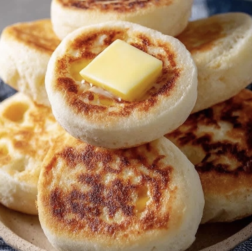 These muffins are golden on the outside and soft inside, with a slightly tangy flavor from the yeast. Their signature texture makes them ideal for absorbing butter, jam, or savory toppings.