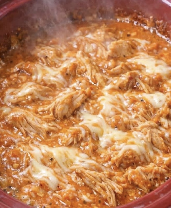 This dish is creamy, slightly tangy, and rich with savory enchilada flavor. The chicken becomes tender and juicy as it slow cooks, soaking up the sauce. The final addition of sour cream and cheese creates a smooth, velvety texture that pairs well with rice, tortillas, or even on its own.