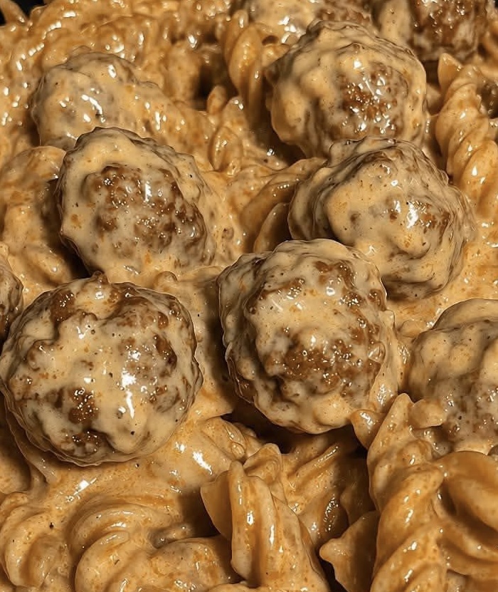 This dish features juicy, well-seasoned meatballs enveloped in a luscious, creamy sauce that clings beautifully to each strand of pasta. The balance of savory meat, rich dairy, and aromatic herbs creates a deeply comforting and indulgent experience.